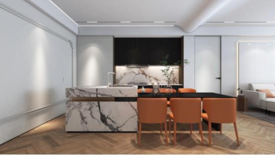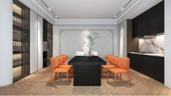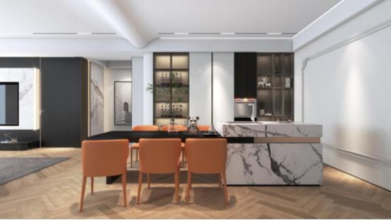 大理石中岛台 天堂影院,泼墨纹理自然灵动,智能推拉滑轨天堂视频免费观看,集吧台,餐台于一体,搭配爱马仕橙色CBD家居·金豹 | J002餐椅,热情活力,空间足以承载多元生活场景,演绎静雅而时尚的东方美学,为欢聚时刻增添新意, 。