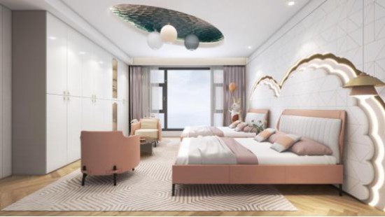 背景墙梦幻灵动,流露出少女气息,CBD家居·金豹 | J039软床(定制版)浪漫粉色暖意十足,简雅的构型自在轻盈,重塑空间张力。