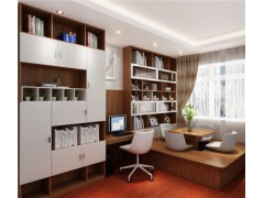 榻榻米书房内可以在床头床尾安装书柜书架,随时随地书本就在手边,或者布置一些小玩意小饰品,一举多得。