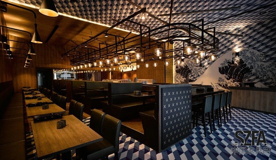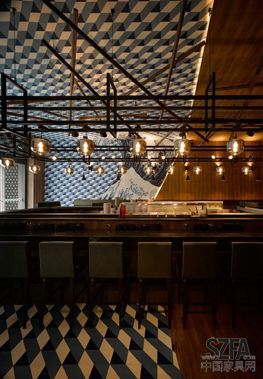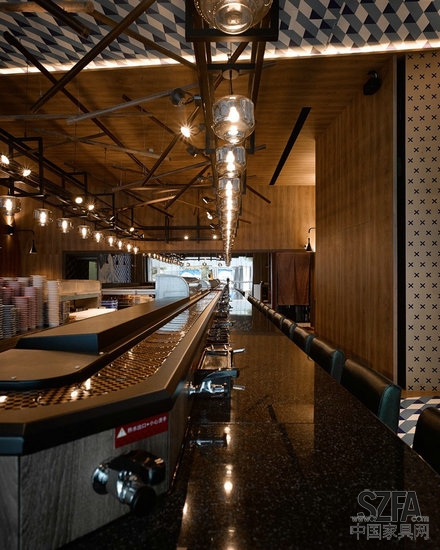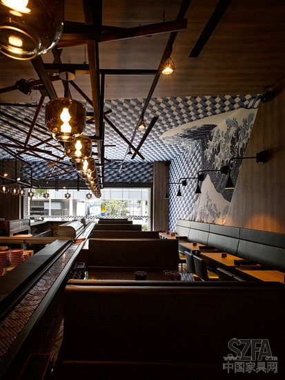 我们将这个店面想象为大海上一艘灯火通明的渔船,它有自己的航道,不曾迷失,那个引导返港的方向,就是海寿司的初心:用和谐简约的调理 天堂视频高清,去尊重,品味,珍惜来自土地与海洋恩赐的食材,这个故事的主角,也是店内的灵魂所在,回转台,是那艘海上夜捕的渔船,灯火通明,勇往直前,充满生命力,我们刻意选择了类似油灯造型的吊灯,用序列的方式凸显数量,让空间被吧台上的吊灯布满,配合喷黑铁架与铁网,完整呈现古朴的美感,食客置身其中,抬眼看见的每一个面向,都是海寿司的浮世绘,不仅有层次,还有故事的想象延伸。