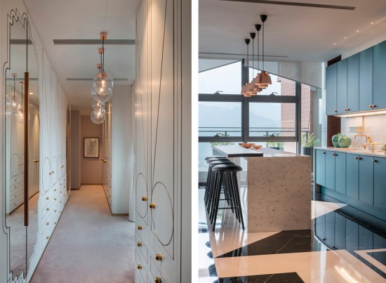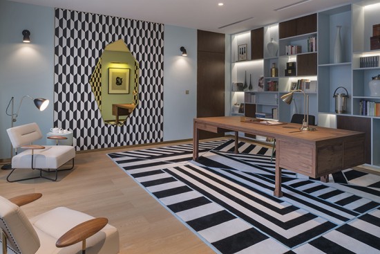 对于Thomas Dariel而言,银湖蓝山不仅仅是一处充满活力,横溢盎然的理想居所,他更是传递艺术及高雅的生活方式,在顶层复式的每个空间,都弥漫这一种对艺术充满热爱的生活环境。明亮强烈的色彩,装饰性的表面纹饰,不对称的线型和形状都蓄意带来一种奇特而有趣的氛围。