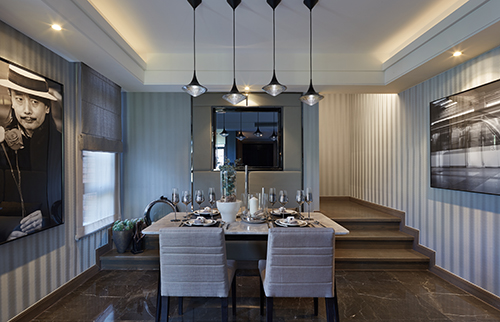 沿着楼梯踏步而上即为一楼的客餐厅,整体天堂视频免费观看延续之前的色系,此空间虽然狭小但是功能齐全,墙面铺贴条纹壁纸,搭配造型优雅的灯具,简洁而大方,现代都市生活气息扑面而来。餐桌临窗,并于一边铺设软包,可倚墙而坐,一边观景一边品鉴美食。