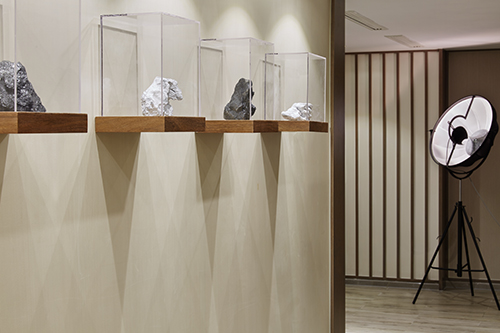 主要建材:木皮、壁布、木地板、石材、金属、透光压克力、皮革、玻璃夹纱