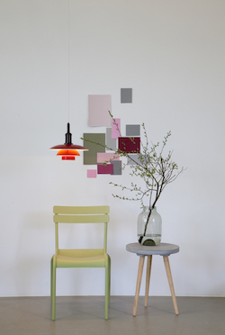 The pendant has metal shades, available in green, yellow, red and white. The fixture housing is silk mat brown and made of copper. All colours are based on PoulHenningsen's colour universe. Like the designer, the fixtures are colourful!
