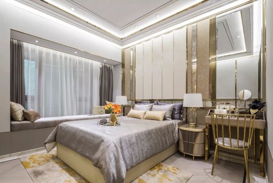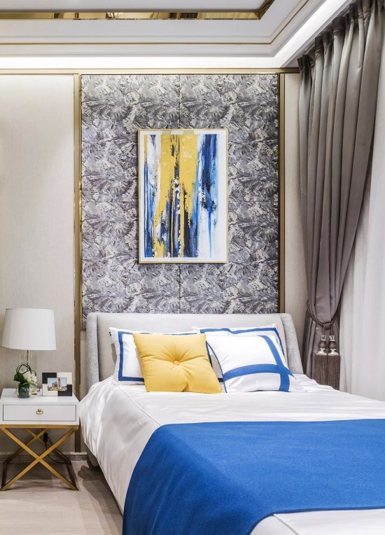 法式风格软装是浪漫优雅的必要条件,除却传统的繁重与冗余之后,在对称的轴线排布、细腻而简约的石膏线、灰色软包的细节处,我们依然能够寻觅到法式的精致考究,以一种更贴合现代审美的方式。