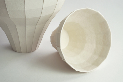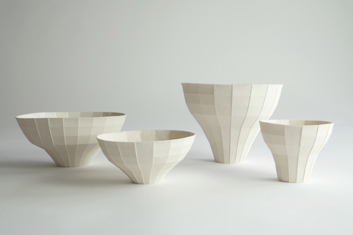 我希望通过折纸的方式来创造不同的结构与空间,并利用陶土把结构转化为瓷器,把时间凝固,将本来脆弱和抽象的造型变成可用的器皿。