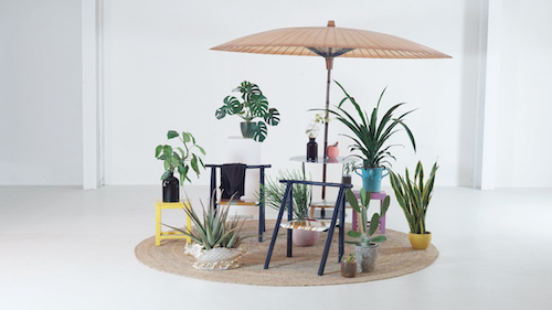 基于余杭油纸伞的传统材质和制作工艺,我们在伞面配色与花线的颜色给予更当代和细节的处理。安放在花园里,给人平和与自然。